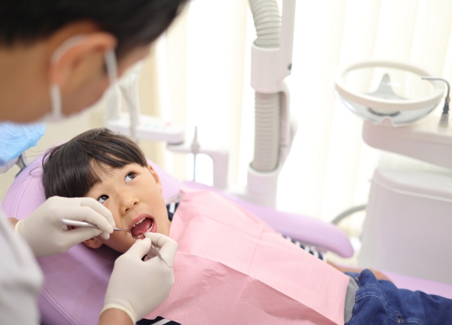 歯科医院へ初めてお越しになるお子さまの場合、不安や恐怖心を持っていることがほとんどです。無理に治療を行えば、その後歯科医院へ足を運ぶことが難しくなる恐れもあります。そのため、治療に使用する器具を見たり、触ったりしていただき、歯科医院の雰囲気に慣れていただくことから診療を始めています。